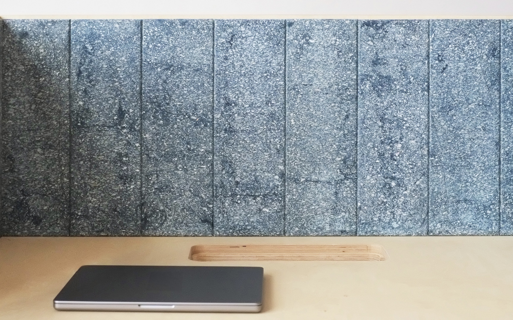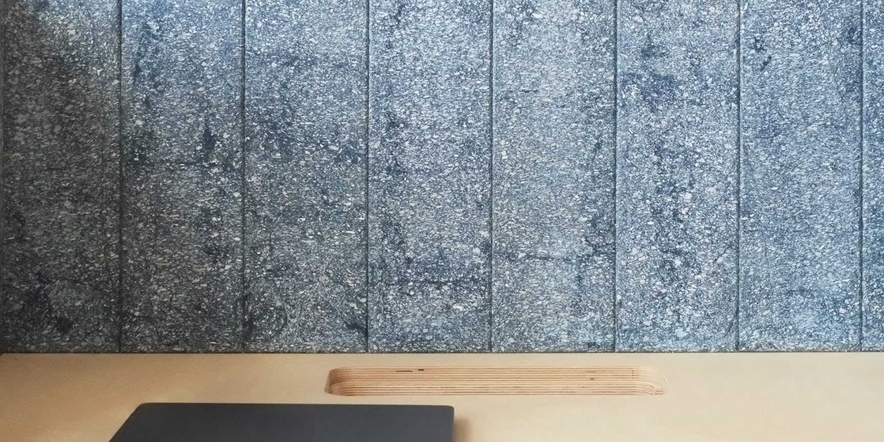 Текстура биоматериала Cupsan напоминает натуральный камень или землю. Он выполнен из использованных стаканчиков для кофе и производится в виде плит высокой плотности, которые можно использовать аналогично МДФ или для создания объектов. Изначально лондонская Blast Studio экспериментировала с мицелием, однако вскоре, в том числе из-за характерных ограничений в работе с ним, обратила внимание на переработку бумажных стаканчиков. Недавно команда начала самостоятельно производить материал: по ее словам, для создания одного квадратного метра Cupsan необходимо около 840 стаканчиков. В процессе переработки дизайнеры сначала тщательно стерилизуют их, а затем превращают в бумажную массу, предварительно удалив пластиковую оболочку. За скрепление волокон отвечает связующее вещество без содержания пластика, а для окраски материала дизайнеры используют натуральные пигменты, такие как охра, древесный уголь и мел.