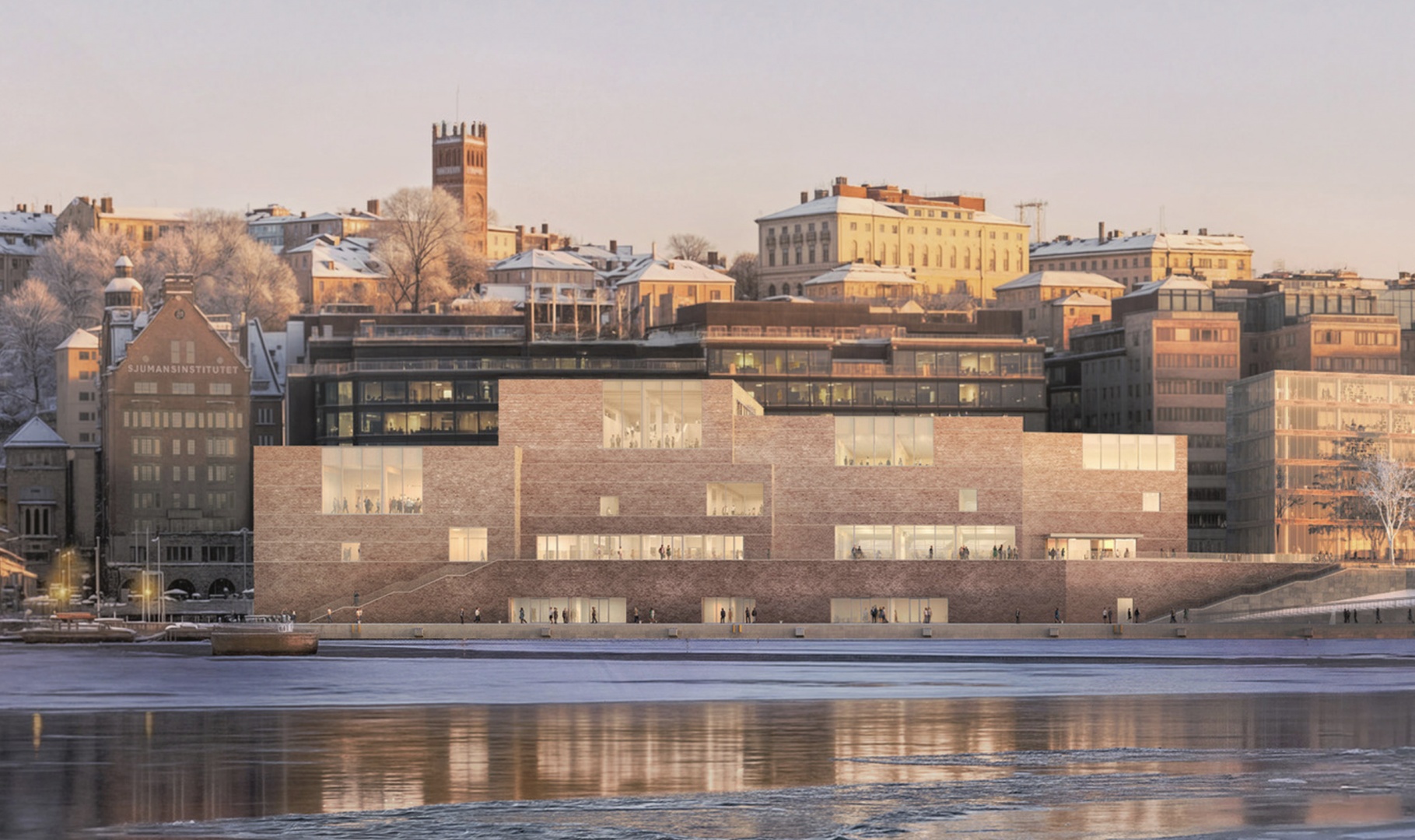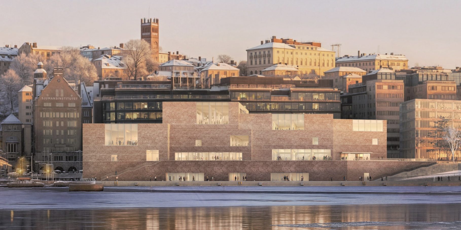 Команда бюро работала над обновленным дизайном совместно с локальной студией Sweco Architects. Проект представляет собой серию объемных зданий из дерева, расположенных вдоль набережной на острове Сёдермальм и облицованных красным кирпичом. В центре планируют проводить семинары, лекции, мероприятия и выставки, на которых будут представлены достижения и истории лауреатов Нобелевской премии в области науки, литературы и мира. По задумке David Chipperfield Architects, пропорции сооружений продуманы в соответствии с историческими таунхаусами, расположенными вдоль воды, и рельефом района. Такое решение позволит центру гармонично вписаться в существующую застройку и восприниматься как единое целое с оригинальной архитектурой. На первом этаже расположатся фойе, магазин и ресторан с выходом на открытую террасу и видом на воду.