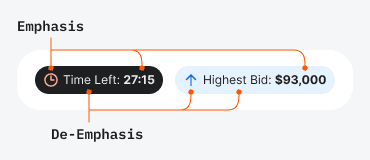 Вы можете расставлять макро- или микроакценты. С позиции гештальт-подхода макроакцентирование ориентировано на элементы в целом. Например, элементы «Самая высокая ставка» («Highest Bid») и «Оставшееся время» («Time Left») делают контрастными, но как насчёт текста и иконок, которые находятся внутри них?