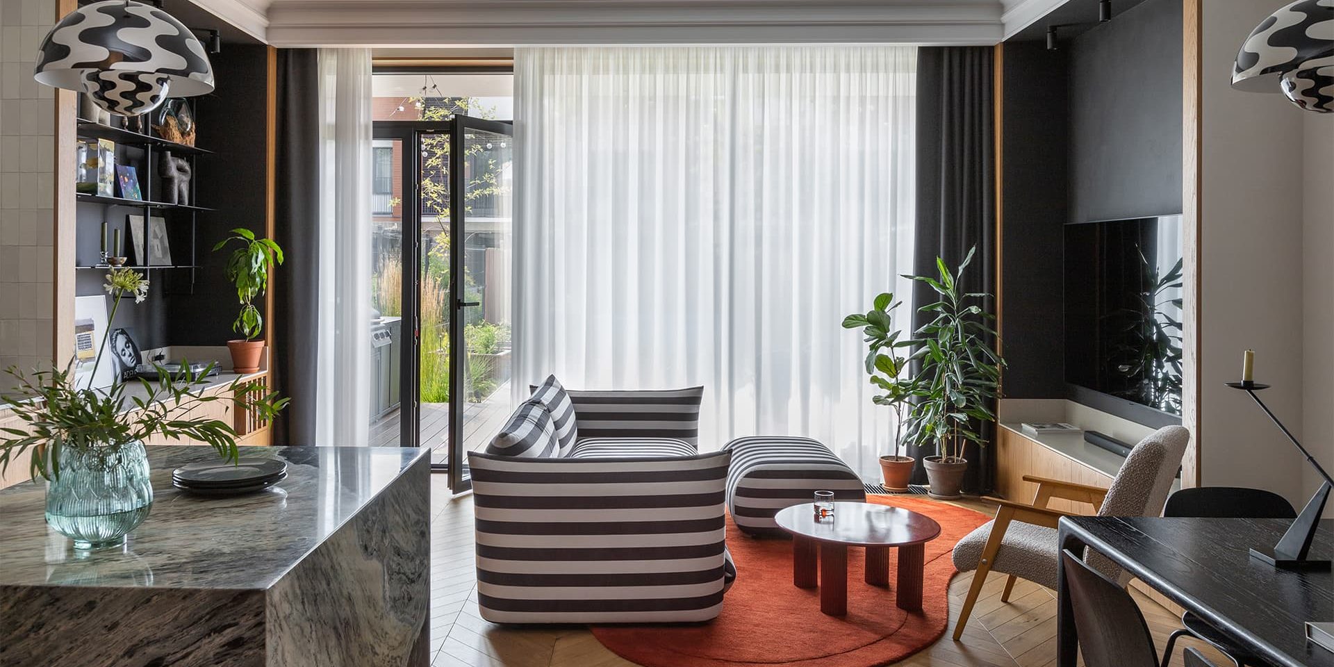 Интерьер этого таунхауса в Гродно Юлия Страпко создавала для себя и своей семьи. Супруги успели сменить много квартир в разных городах, однако именно этот дом стал первым, в котором дизайнер смогла полностью отразить свой внутренний мир на данном этапе жизни. Интерьер пространства решили визуально связать с небольшим участком, окружающим коттедж.