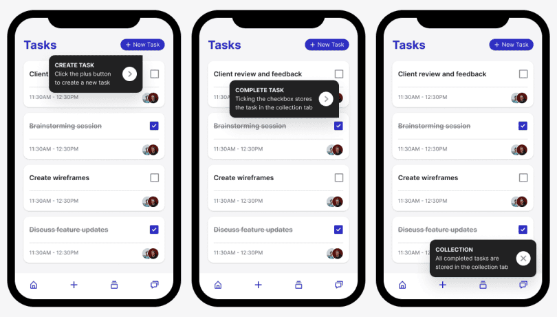 Принуждение пользователей к запоминанию информации с экрана онбординга оказывает высокую когнитивную нагрузку, с которой большинство не может справиться. Люди лучше усваивают информацию, когда выполняют задачи и взаимодействуют с контентом, чем когда читают инструкции. Используйте интерактивные подсказки, чтобы рассказать, как работают функции, вместо того, что обучать их в процессе онбординга.