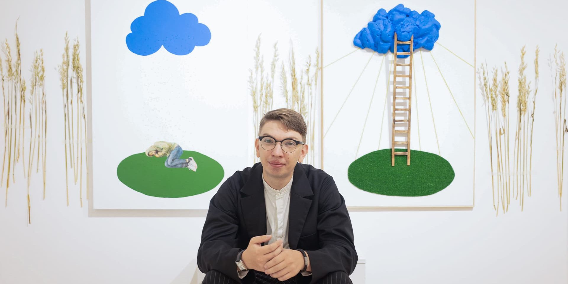 Концептуальный художник Иван Симонов работает с социальной проблематикой, размышляя о месте человека в современном мире и не ограничиваясь одним медиумом. Благодаря образованию в сфере режиссуры все выставки автора отличаются внутренней логикой и повествованием. Художника представляют две галереи — Syntax Gallery и Pogodina Gallery, а в последней сейчас открыта его персональная экспозиция «Даждь нам хлеб насущный».