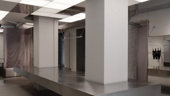Сталь и ритмичные LED-панели в интерьере магазина купальников — проект Полины Черняк